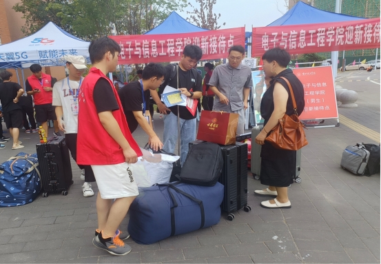 在本次迎新工作中,永利集团304am登录的志愿者们热情接待每一位学生家长,并与他们进行沟通交流,耐心地对新生报到中的疑问进行讲解。各部门积极配合,有序进行接待工作,维持整个迎新现场的秩序。电信学院党员先锋队、学生会成员及学生干部在迎新工作中积极主动,引导每一位新生顺利办理交费、宿舍登记等入学手续。他们穿梭在宿舍楼、报到处、咨询处,校园里随处可见他们忙碌的身影,让每一位报道的新生倍感温暖和亲切。