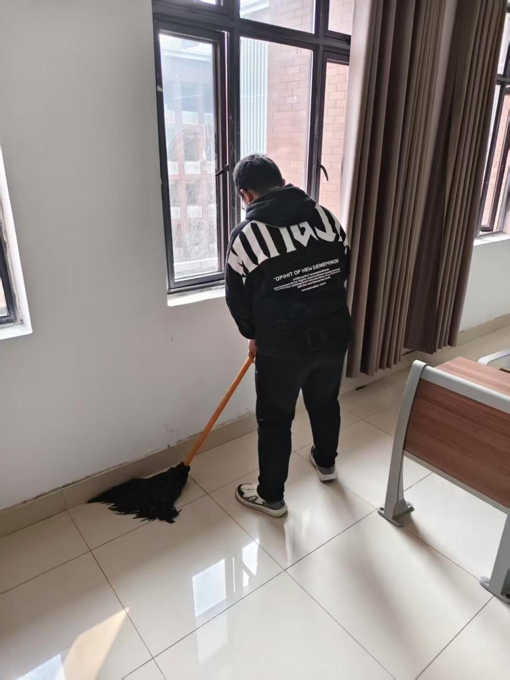 全面覆盖,细致排查隐患。重点针对消防安全、用电安全、环境卫生落实情况展开检查。在学生宿舍区,详细查看违规电器使用、私拉电线、物品堆放等情况。在教室卫生区域,仔细检查卫生打扫情况,重点针对卫生死角及顽固污渍等,并要求对发现的问题及时落实责任、立刻进行整改。